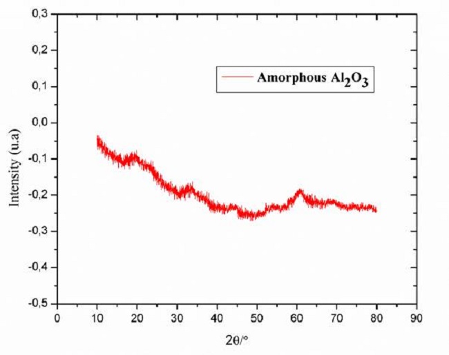 Figure 5 shows the XRD pattern of Al2O3 obtained from the deposited coating, which corresponds to the literature (Reyes, Serrato, & Sugita, 2006). As the coating deposition was made at 370 °C, no characteristic peaks are observed in DRX that indicate the amorphous character of the Al2O3 layer.