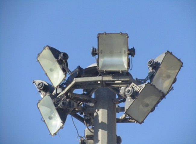 According to the simulation results (as shown in Fig. 3), the middle area of the courtyard has the least amount of lighting intensity. Moreover, the light intensity in 60% of the courtyard is less than 20 lux, which is not an appropriate and acceptable brightness set by the standards for such an area. By using the False Color curve, on the other hand, it is also observed that the high power, low-height installation, and inappropriate centralized layout of the projectors have caused strong dazzling light in some parts of the Holy Shrine of MASOUMEH. Based on the above issues, we propose alternative lighting schemes; replacing the centralized design of high-power projectors, that is, 1000 and 2000 watts ones, in limited locations with the widely distributed, low-power 400-watt projectors to provide better illumination while avoiding dazzling light in the courtyard. Also, using light towers (Fig. 4) with high-power projectors in suitable locations to provide lighting in the middle of the courtyard.