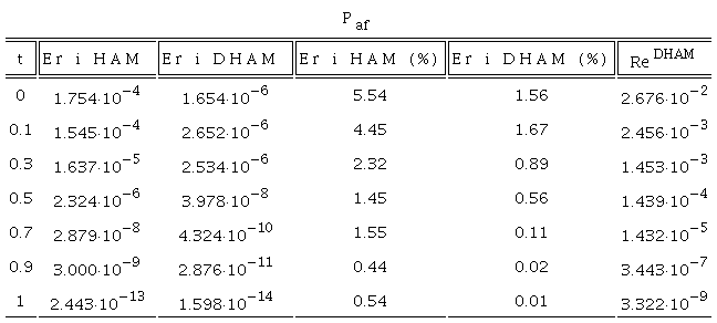 We present a summary of the main results obtained using the numerical and analytical methods at Tables 1-3. The values of the errors of the dynamic variables included in the model: , , and are compared for the interval time [0,1].