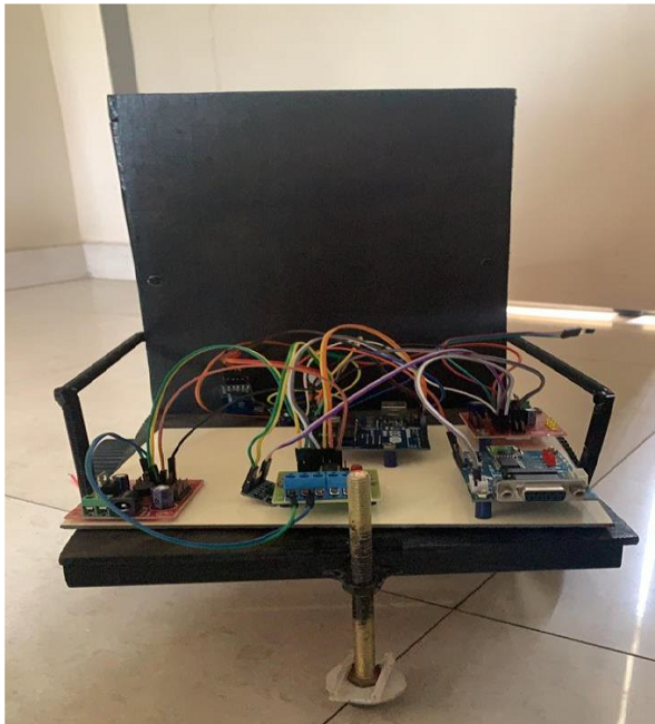 Apart from the sensors listed above, the system comprises of a 12V battery, power divider, a motor driver, Arduino UNO, Zigbee transreceiver with Bluetooth attached to it as seen in Fig.1. The finished system looks like the one in Fig. 2., with all the modules connected.
