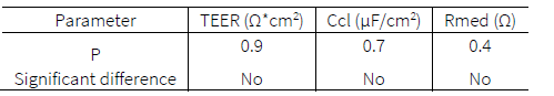The evaluation of the impedance measurements consisted of comparing ten values of three MDCK-type cell cultures with those of the commercial Cellzscope® instrument. The Mann-Whitney test was applied to determine the differences. The results are shown in Table 3.