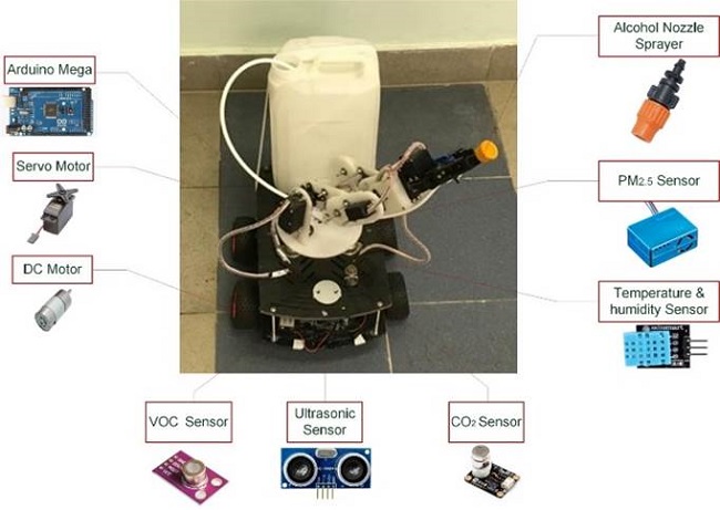 The robot has been innovated as a solution to prevent the transmission of viruses, especially in the Corona virus pandemic that the world is passing through. Since the robot automatically measures the major air quality parameters inside the room through a group of sensors that measure continuously the parameters (every 10 seconds) to make the appropriate decision that appears on the mobile application. If the action is not satisfactory to the robot logic (some reading(s) still out of range), the robot performs a new set of measurement and gives another message to the user to take the appropriate corrective action and again until all the parameters are in the accepted range.