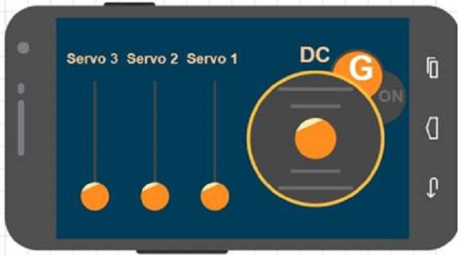 Figure 4 shows the GUI of the mobile application applied for the control of the dc motor to make the mobile platform start at a room’s home position and for the control of the servo motors to test the manipulator’s rotational motion.