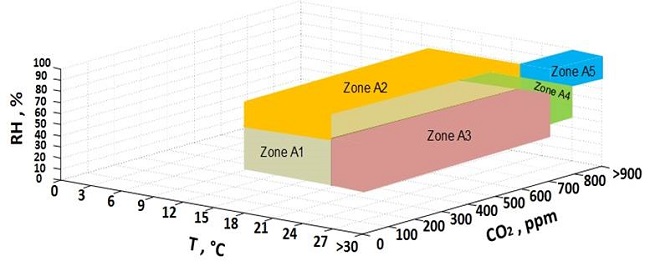 Although CO2 is produced both naturally and through human activities, it is not classified as an air pollutant. However, it is treated as a pollutant because the amount of oxygen required for breathing becomes insufficient at high concentrations of CO2 in an indoor space. Temperature and relative humidity also contribute to the sense of thermal comfort (Jo et al., 2020).