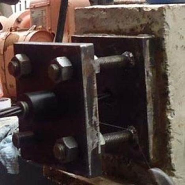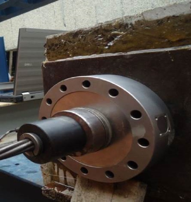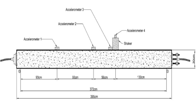 Fig 1 shows the setup used in the experimental study. The simply supported beam has dimensions (bxhxL) of 25 x 30 x 395 cm, with a 5/8-inch tendon placed concentrically, without grouting, in a 1-inch duct. The beam was post-tensioned to 196,133 N force using a hydraulic jack. The applied force was measured with a load cell installed between one of the anchorages and a steel plate provided to reduce stress concentrations (Fig 2). After removing the jack, the cell registered a value of 153,964.41 N.