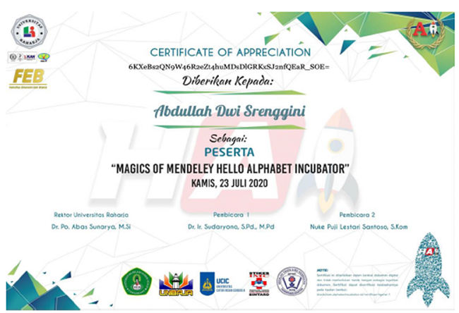 Rahardja, U, Aini, Q. , Graha, Y. I., & Khoirunisa, A. (2019). Implementation of Gamification into Management of Education for Motivating Learners. Proceeding Interuniversity Forum for Strengthening Academic Competency, 1(1), 209.