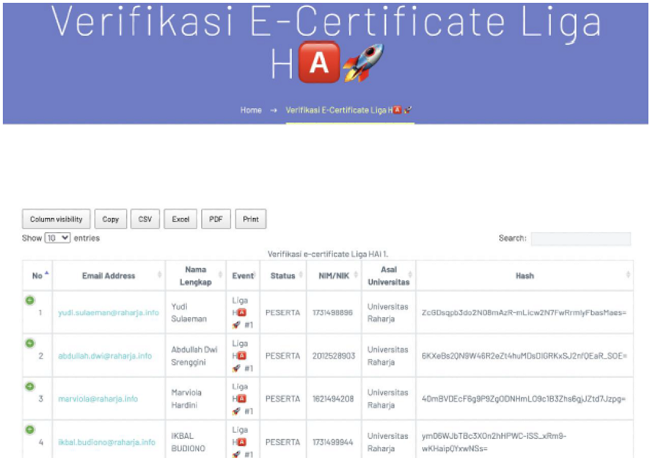 Therefore, the world of education also does not want to be left behind by today's sophisticated technology, where blockchain can be adopted by educational institutions, especially in profiling each individual with the final result in the form of a certificate in digital form equipped with blockchain sophistication (Rahardja et al., 2019). This is necessary because of the prevalence of falsification of diploma data in educational institutions in Indonesia, so the quality of Human Resources (HR) is questionable. This study confirms that information distribution activities can be controlled and personalized properly using blockchain-based digital certificates which have a significant effect on public satisfaction and data security (Hariguna et al., 2019; Rahardja & Raharja, 2009).