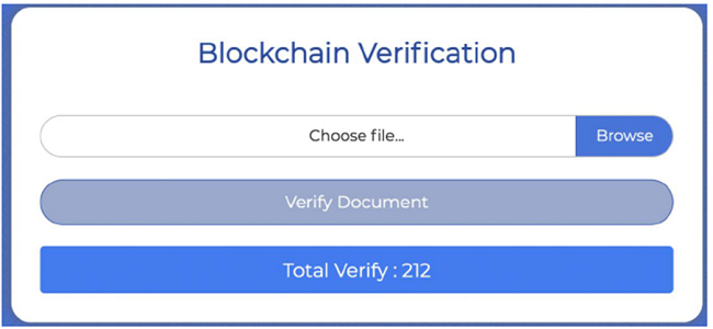 Figure 7. Users have options to upload files in PDF format. The results will be displayed with complete information about the blockchain authentication.