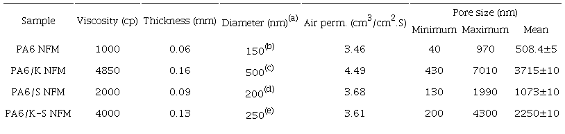 were characterized by measuring their viscosity, nanofiber diameter, porosity,