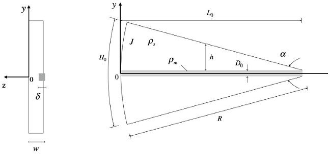 As a first step in the optimization process is necessary to define an elementary system where the main physical and geometrical variables are considered. A solar cell with a disc-shaped body, is also composed of a circular sector of radius R and constant thickness w .