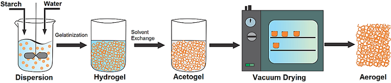 Druel, L., Bardl, R., Vorwerg, W., & Budtova, T. (2017). Starch aerogels: A member of the family of thermal superinsulating materials.Biomacromolecules,18(12), 4232-4239. https://doi.org/10.1021/acs.biomac.7b01272