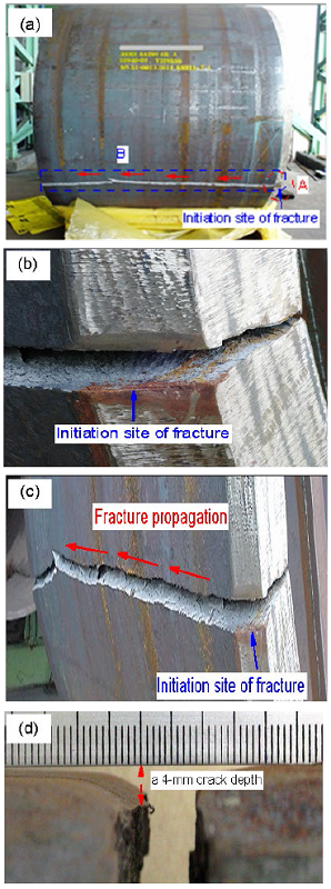 Chemical compositions of the failed steel plate were analyzed, as given in Table 1. The analysis indicated that the material of the cracked steel plate was SA 299 carbon steel. The temperature during the fabrication was reported to be slightly above 0oC.
