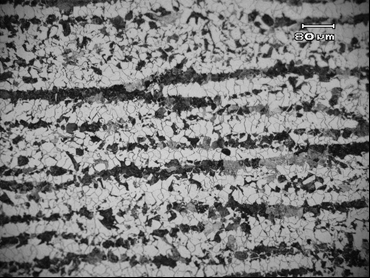 Microstructure examination at the mid-wall of the failed plate clearly exhibited the ferrite/pearlite banded structure. This kind of structure is usually found in the hot rolled steels and it can be described as a microstructure which composes of alternate layers of pro-eutectoid ferrite and perlite in comparison to irregular distribution of these microstructural constituents (Peeratatsuwan & Chowwanonthapunya, 2020).