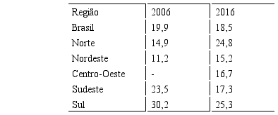 E a mortalidade por aids? Considerando o período entre 2006 e 2016, a queda no coeficiente de mortalidade padronizado para o Brasil foi de 11,9%. Entretanto, nas regiões Norte e Nordeste, os coeficientes sofreram aumento de 7,6% e 2,3%, acompanhando a tendência de crescimento da aids nessas regiões (BRASIL, 2017a, p. 16).
