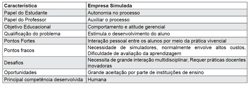 Nessa perspectiva, os cursos de graduação utilizam de recursos vivenciais, contribuindo para a formação do aluno no que tange às práticas administrativas. Para Rodrigues e Souza (2001), a simulação é aplicada no ensino superior com o intuito de reproduzir o ambiente e o comportamento do mercado de trabalho, experiênciaa que os estudantes provavelmente não teriam acesso antes de se formarem. Mesmo quando fazem estágios, a prática ainda é limitada. Os autores ainda ponderam que existe a preocupação referente à aprendizagem prática devido à importância de habilidades e competências vinculadas à tomada de decisão.