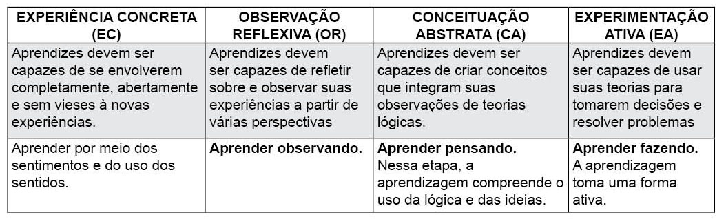 KOLB, D. A. Experimental Learning: experience as the source of learning and development. Englewood Cliffs: Prentice–Hall, p. 256, 1984.