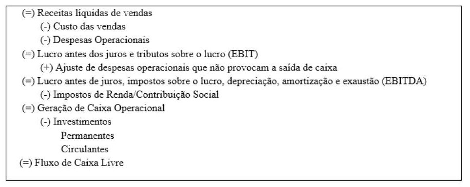 Prevalecendo como valor base para avaliação de empresas, na literatura e em pesquisas recentes (CUNHA et al., 2013; FERNÁNDEZ, 2007), o FCL é o excedente requerido de fluxo de caixa para financiar todos os projetos que tenham um valor presente líquido positivo, quando descontado por um relevante custo de capital. Em corroboração, Richardson (2006) define o FCL como o fluxo de caixa além do que é necessário para manter os ativos e ainda financiar novos investimentos esperados.