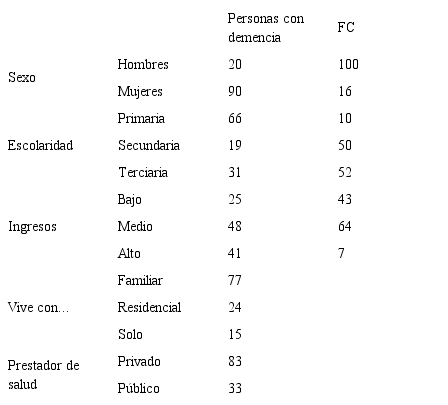 Para referirme a las/os familiares – cuidadores/as principales, utilizaré el femenino como genérico – tanto para hombres como para mujeres – pues como se verá, en nuestra muestra existe un amplio predominio de mujeres. A su vez, para referirme a los profesionales entrevistados, utilizaré el masculino como genérico - tanto para hombres como para mujeres – por ser mayoría los hombres y como forma de preservar la identidad de cada profesional.Se realizó un muestreo de tipo intencional. La muestra quedó conformada por 116 familiares cuidadoras informales (FC) y 15 profesionales médicos tabla 1. Las FC fueron reclutadas a partir de diversas fuentes: agrupaciones de familiares de diferentes ciudades, profesionales, grupos de personas mayores, servicios universitarios, servicios médicos, etc. El criterio de inclusión fue ser FC (no rentada) de una persona que estuviera siendo tratada por algún tipo de demencia o EA en el sistema de salud. Se utilizaron ambos términos como forma de hacerlo más accesible a las familiares, teniendo en cuenta la heterogeneidad de términos que ellas manejan sobre el diagnóstico (demencia, EA, demencia senil, etc.). En todos los casos se chequeó que efectivamente su familiar cumplía con los criterios de demencia de la OMS (2013). Para conformar esta muestra se buscó que el grupo de personas con demencia estudiadas mantuvieran un cierto equilibrio interno en relación a la población en general, en cuanto a nivel educativo, ingresos y tipo de cobertura de atención en salud. Asimismo, se buscó activamente incluir casos de personas que residieran en departamentos con alta, media y baja densidad de población mayor. De esta forma, se entrevistó a FC en 18 ciudades, pertenecientes a ocho departamentos del país.