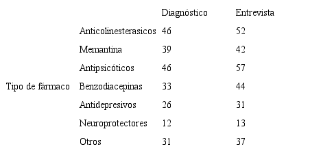 A este número de fármacos psicotrópicos se deben agregar otros no relevados en este estudio, que se consumen para otras patologías como gastritis, hipertensión, etc.. En este contexto de gestión farmacológica de la enfermedad, interesa especialmente conocer qué aspectos de la misma se gestionan de esta forma: ¿los cognitivos?¿los afectivos?¿la vida de relación?. Los resultados que se presentan en la tabla 5, indican que ya desde el diagnóstico se comienza una gestión farmacológica de los casos en los aspectos cognitivos (anticolinesterásicos y memantina), de la conducta (antipsicóticos) y del estado afectivo (antidepresivos y ansiolíticos). Estas tres áreas, vinculadas entre sí - pero a la vez diferenciables a los efectos de la intervención - para las FC forman parte del mismo cuadro orgánico de la demencia, naturalizando que el mismo debe gestionarse de forma exclusivamente bioquímica. Se reafirma así el modelo biomédico de comprensión de estos trastornos como un problema exclusivamente cerebral e individual.