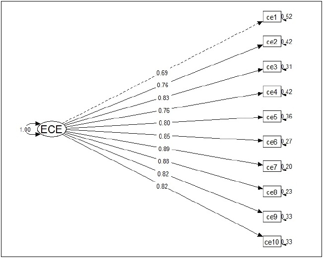 Los cambios realizados en la redacción de los ítems de la ECE en esta investigación se alinean con los antecedentes, tal como se detalla en los trabajos de Ramírez y Hernández (2007), Dominguez Lara (2013, 2014), González-Rivera et al. (2022) y Martínez-Líbano et al. (2022). En total, se modificaron ocho ítems (1, 3, 4, 6, 7, 8, 9 y 10), los cuales demostraron ser pertinentes para la medición del constructo, de acuerdo con los datos obtenidos de las cargas factoriales.