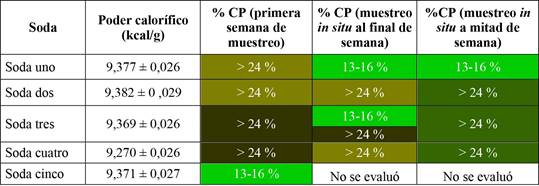 Se tomó una muestra de cada soda la primera semana de recolección; luego se tomó una in situ de cada soda, al finalizar la semana y otra a mitad de semana.