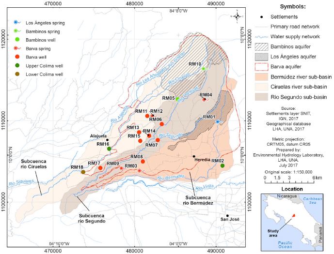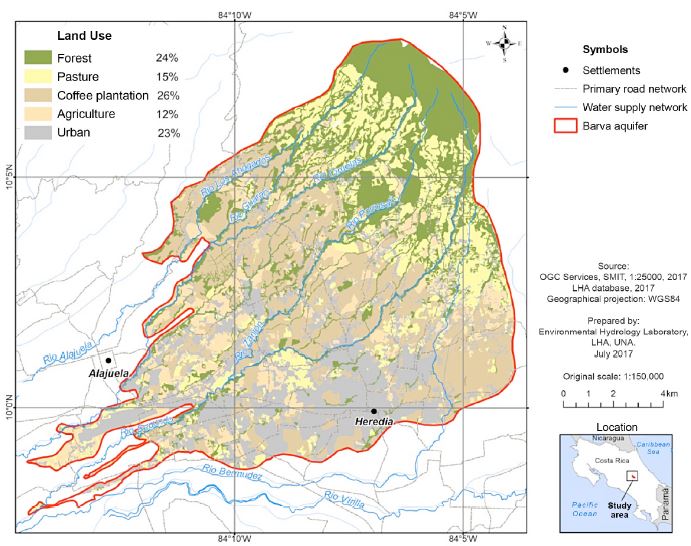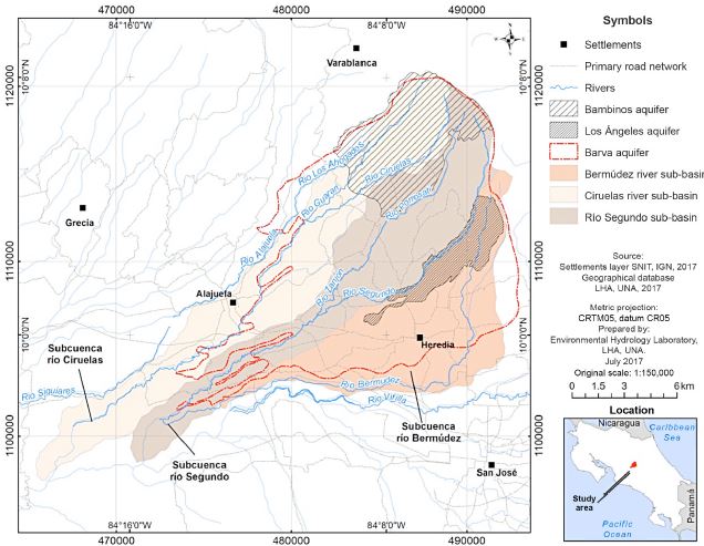 Published-Publicado: 31/1/2019In the northwest of the Central Valley of Costa Rica, most of the population depends on waters of the Barva, Los Angeles, Bambinos, Upper Colima, and Lower Colima aquifers. In addition, these resources are the main source of water for the development of commercial and industrial activities. In Costa Rica, the Central Valley is the region in which the largest number of registered wells is reported, as 60% of the national population and 85% of the industrial activity are located in this region (State of the Nation Program, 2005).