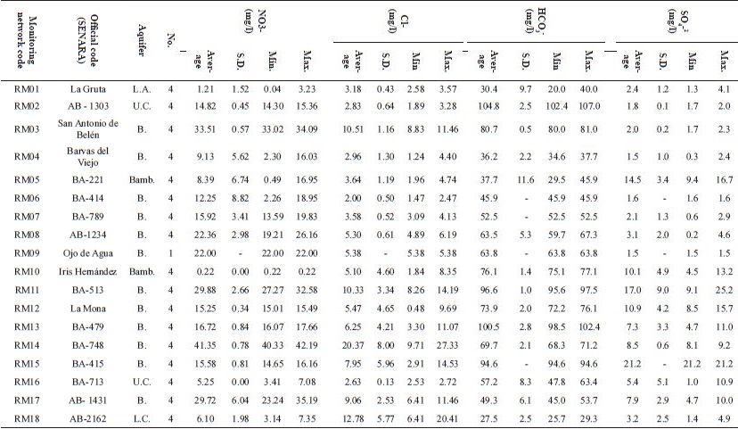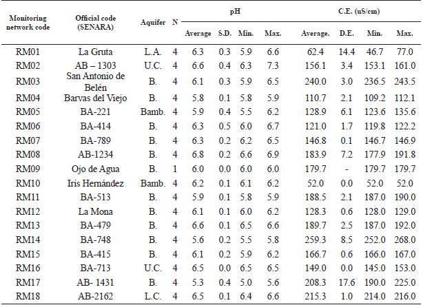 Keywords: Monitoring network, groundwater quality, Barva aquifer, Colima, nitrates, land use.