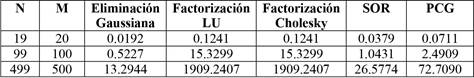 , así como cada uno de los métodos (directos e iterativos) de resolución de sistemas lineales descritos previamente.
