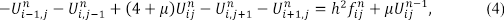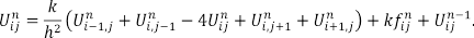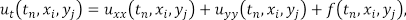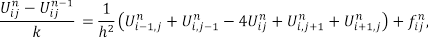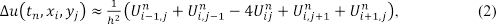 así como , en conjunto con el esquema de 5 puntos de esténcil para el laplaciano (ver, por ejemplo, Morton y Mayers (2005), Strikwerda (2004) o LeVeque (2007)):