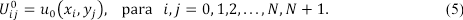 De la aproximación por diferencias finitas (4), en conjunto con la condición inicial (5) y la condición de borde (6), es posible apreciar que los puntos donde se conoce los valores de u, así como aquellos donde no se conoce (valores a determinar o incógnitas), son los ilustrados en la Figura 2.