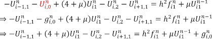 . Es decir, la ecuación (4) establece una relación entre los valores de la solución de la ecuación de calor en dos aproximaciones de tiempo consecutivos. Por ende, la resolución del problema (1) requiere primero aproximar los valores de u en el primer tiempo t0 y luego emplear el resultado obtenido para alcanzar los valores en el tiempo siguiente. Sin embargo, nótese de la tercera ecuación de (1) que los valores de u en el primer tiempo t0 son conocidos a priori de manera exacta, es por ello, que a la ecuación