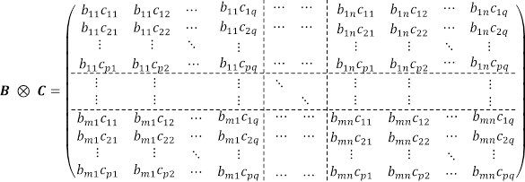 Aquí, el símbolo ⊗ corresponde al producto tensorial entre matrices, definido como: