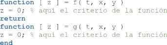 , las cuales pueden ser implementadas en MATLAB®, respectivamente, de la siguiente manera: