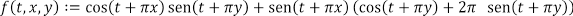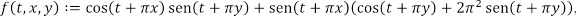 Con ayuda de este fragmento de código, se ejecuta el método y se crea la película para visualizar la solución obtenida. En efecto, considere en el problema (1) los valores: