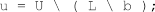 donde L es una matriz triangular inferior con unos en su diagonal y U es una matriz triangular superior, tales que A = LU. De esta forma, el sistema lineal Au = b, puede ser resuelto mediante el comando: