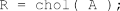 Retorna una matriz triangular superior R, la cual satisface que A = RtR. Es decir, determina la factorización de Cholesky, donde R:=Lt. Luego de esto, se puede proceder de manera análoga a la de la factorización LU.