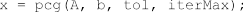 Donde se desea resolver el sistema Ax = b, por medio de una tolerancia relativa al primer residuo tol > 0, con un máximo de iterMax iteraciones. El PCG se conoce como método precondicionado, dado que si se considera la siguiente descomposición para :
