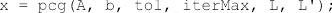 -ortogonales y con ella se puede escribir la solución del sistema como una combinación lineal de esta. En el caso de MATLAB®, este cuenta con comandos predefinidos para ejecutar el método de Gradiente Conjugado Precondicionado (PCG, por sus siglas en inglés), de la forma: