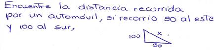 Entre los aspectos utilizados para atribuir una baja calidad a las situaciones matemáticas se encuentra la utilización del término distancia para hallar la medida de un lado de un triángulo; con este, por ejemplo, se identificaron enunciados como: “¿cuál es la distancia de la hipotenusa?”. También “en algunos casos” se solicitaba el área lateral de un cono o su altura, sin especificar si este correspondía a un cono circular recto. Un ejemplo de esto se muestra con la figura 9, en la cual tampoco se establece que el triángulo es rectángulo.