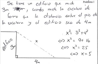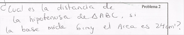 Los problemas (tareas) correspondientes a situaciones matemáticas respondieron en su mayoría a una caracterización de figuras geométricas; por ejemplo, el establecimiento de las longitudes de segmentos y el cálculo de perímetros, áreas o volúmenes. La mayoría se vinculan a figuras planas y en menor medida a sólidos geométricos. Un ejemplo de una situación matemática se muestra en la figura 2.
