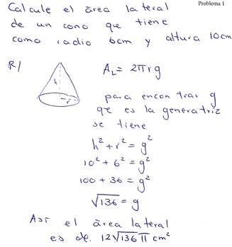 En este contexto se contemplan fenómenos sobre el cálculo de áreas de figuras planas como polígonos regulares e irregulares (mayormente para triángulos( y en figuras tridimensionales, específicamente para el área lateral de un cono (ver figuras 6 y 7).
