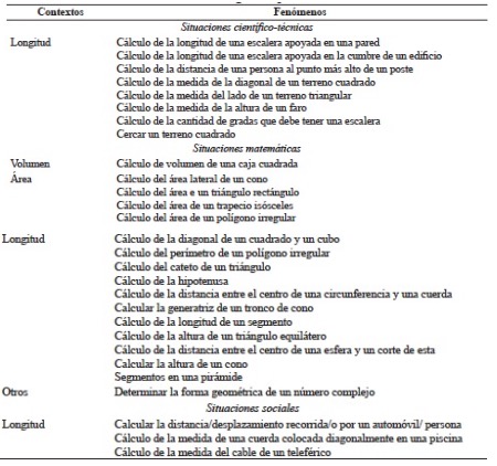 Como se aprecia, los fenómenos identificados se vinculan a situaciones matemáticas en todos los contextos, con la particularidad de que el contexto de longitud es el único presente en todas las situaciones.