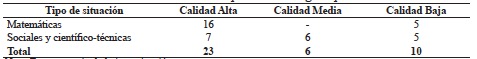 Cabe indicar que una de las situaciones no fue considerada para el análisis de la calidad de la situación, debido a que carecía de enunciado.