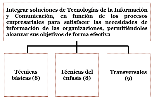 En la Figura 2, se destaca la propuesta del perfil de salida del grado de bachillerato, seguido de una clasificación de 8 competencias técnicas (CT), 5 competencias del énfasis en SI (CTE) y 9 competencias transversales (CT). En la Figura 3, se detalla cada una de las competencias seleccionadas por la clasificación.