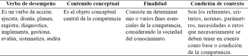 La segunda etapa fue la redacción final del conjunto de competencias, para cuya técnica de redacción se utilizaron tres documentos fundamentales: 1. La taxonomía de Bloom para informática, 2. La Guía de apoyo para la redacción, puesta en práctica y evaluación de los resultados del aprendizaje, elaborada por La Agencia Nacional de Evaluación de la Calidad y la Acreditación (ANECA, 2013), y 3. La Guía metodológica de diseño y rediseño curricular desde la socioformación y el pensamiento complejo (Tobón, 2017). Se decidió el uso de la fórmula compuesta por verbo de desempeño, contenido conceptual, finalidad y condición de referencia o de contexto (Tabla 3). Cada referente internacional fue redactado con esta técnica de redacción.