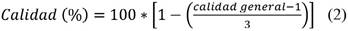 En vista de que el valor de calidad general del árbol es un número fraccionado que oscila entre 1 y 4, se procedió a transformarlo a una escala de 1 a 100, para mayor facilidad de interpretación y análisis:
