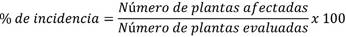 Para calcular el porcentaje de incidencia de la oruga (PI), se deben efectuar cuantificaciones cada día, después de la aplicación (DDA) de los insecticidas en cada uno de los tratamientos, con sus respectivas repeticiones. Se emplea la siguiente fórmula: