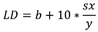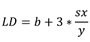 Por su parte, los valores del límite de detección (LD) límite de cuantificación (LC) se obtuvieron a partir del método estadístico propuesto por Miller y Miller (2002). El LD se determinó a partir de la desviación estándar del ajuste (sx/y) y el valor del intercepto (b) de la curva de calibración. Este se obtuvo de la concentración correspondiente a la respuesta calculada, utilizando el valor del intercepto del ajuste de calibración más tres veces la desviación estándar del ajuste a un nivel de confianza del 95 %, como se presenta en la Ecuación 2 (Miller y Miller, 2002). Para obtener el valor de la desviación estándar del ajuste (sx/y) se utilizó la Ecuación 3.