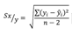 y: valor obtenido de la curva de calibración de los estándares. ŷi: valores de “y” ajustados por medio de la ecuación de la curva de calibración. n: puntos de la curva de calibración.