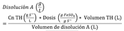 Cn TH: concentración de sulfuro medida en el tanque de homogeneización (g S-/L). Dosis: gramos de FeSO4 por cada gramo de sulfuro (FeSO4/g S-). Volumen TH: volumen del tanque de homogeneización (L). Volumen de disolución A: volumen de disolución A que se desea (L).